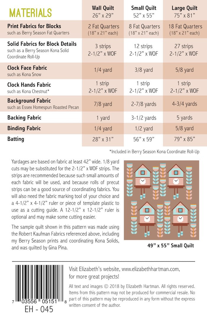 Patterns for three sizes wall quilt, (26 x 29'') small quilt (52 x 55'') and large quilt (75 x 81'')